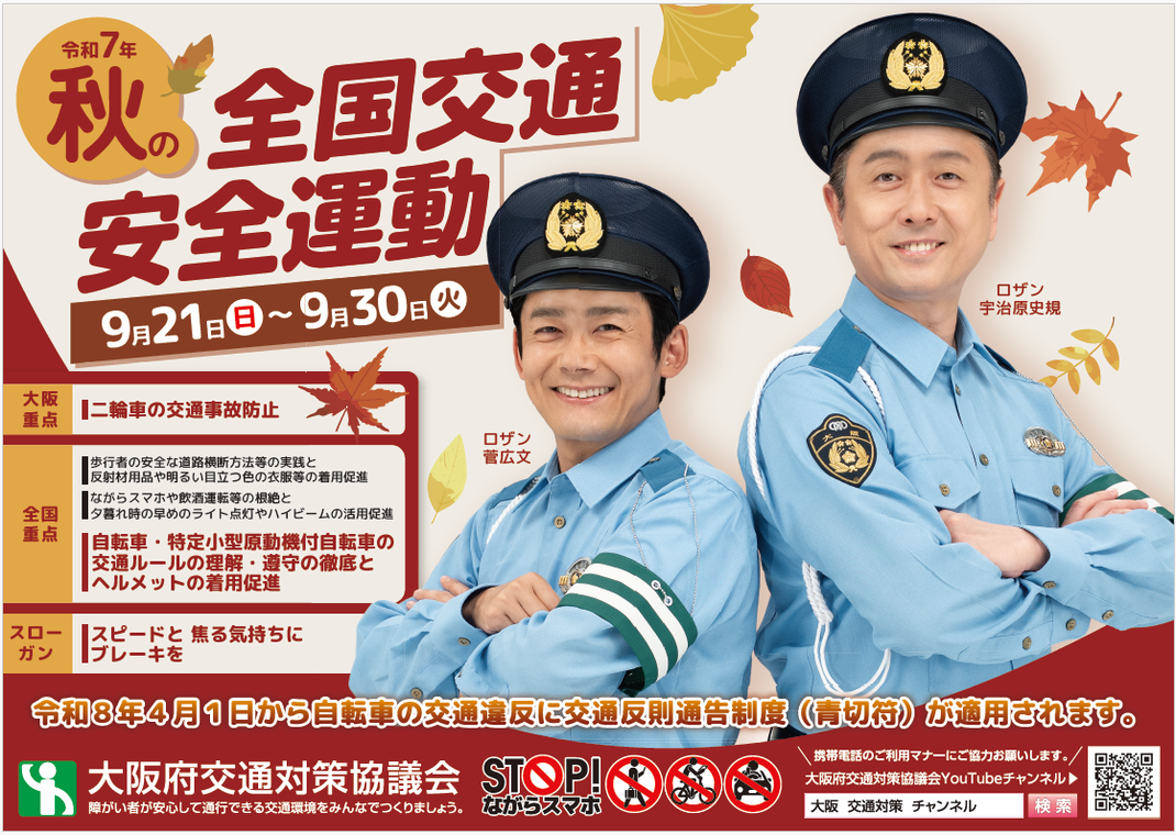 令和7年「秋の全国交通安全運動」の実施について/大阪府(おおさかふ)ホームページ [Osaka Prefectural Government]
