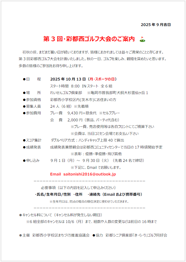 「第3回彩都⻄ゴルフ大会」 のご案内!